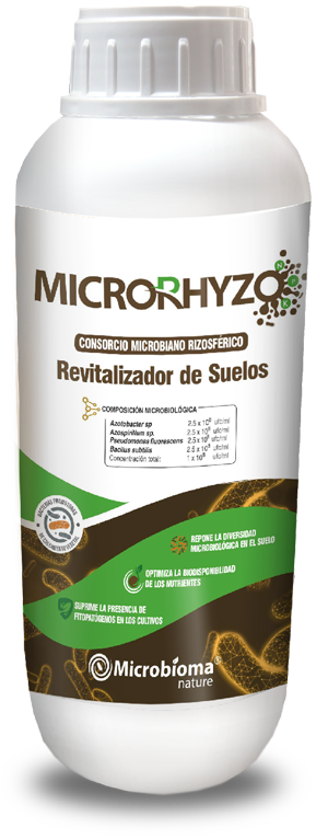 Microrhyzo es un inoculante microbiano constituido por bacterias promotoras de crecimiento vegetal, que incrementan el desarrollo y la productividad de los cultivos.